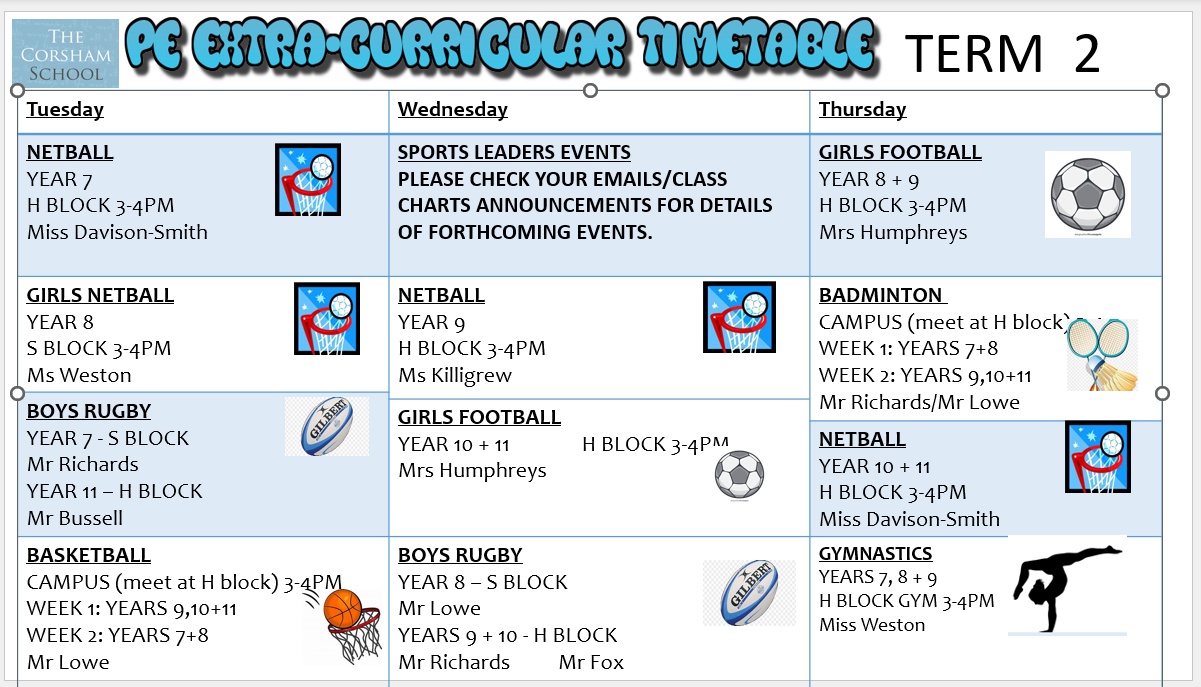 PE EXTRA CURRICULAR TIMETABLE TERM 1