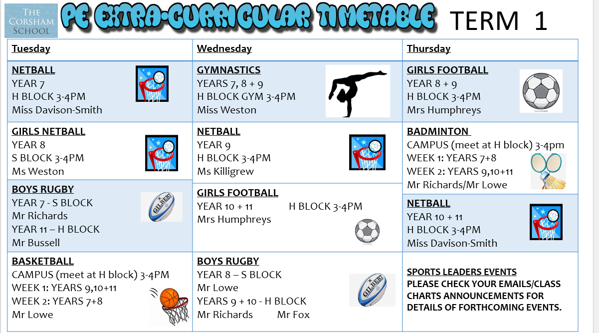 PE EXTRA CURRICULAR TIMETABLE TERM 1