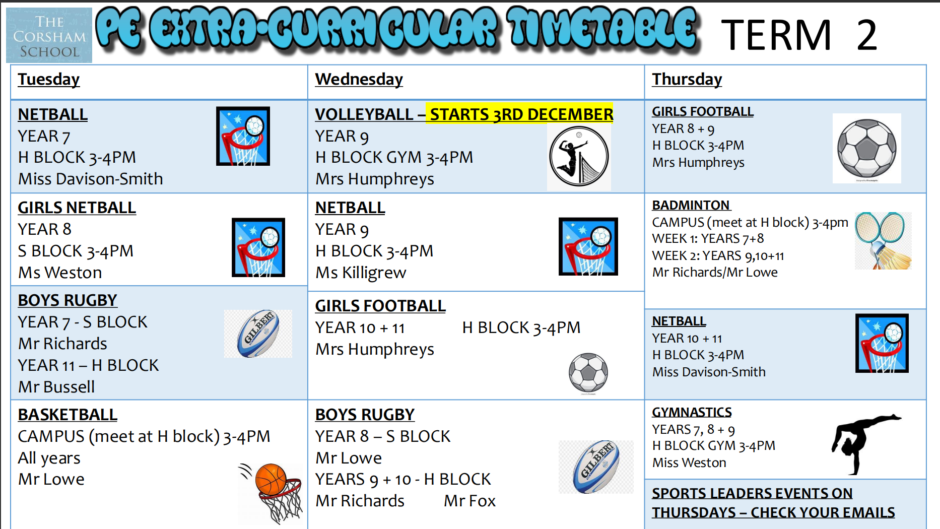 PE EXTRA CURRICULAR TIMETABLE TERM 2